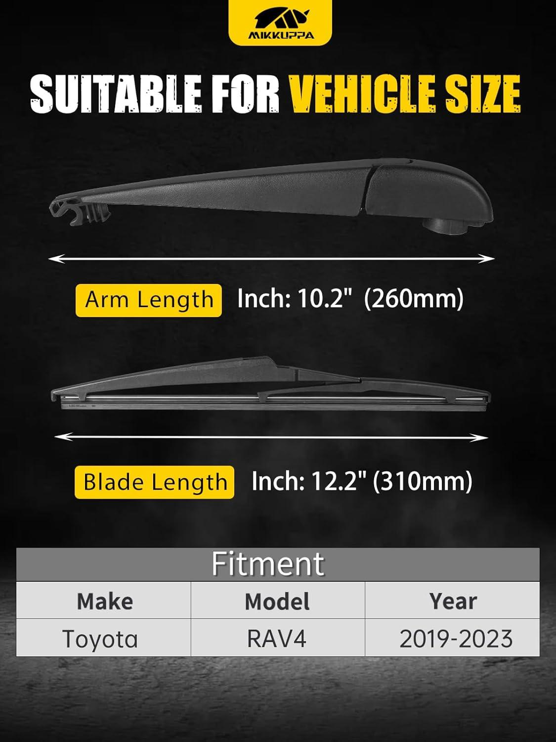 Rear Wiper Arm Blade, Compatible with 2004-2009 Dodge Durango, 2007-2009 Chrysler Aspen – MIKKUPPA Back Windshield Wiper Assembly Replacement – All Season Natural Rubber Cleaning Window(Replacement for Toyota RAV4 2019-2023)
