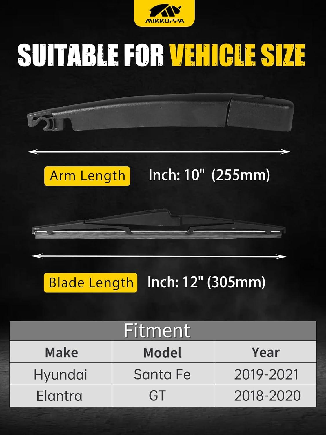 Rear Wiper Arm Blade, Replacement for 2000-2012 Toyota RAV4 - MIKKUPPA Back Windshield Wiper Assembly Replacement - All Season Natural Rubber Cleaning Window(Replacement for Hyundai Santa Fe 2019-2021)