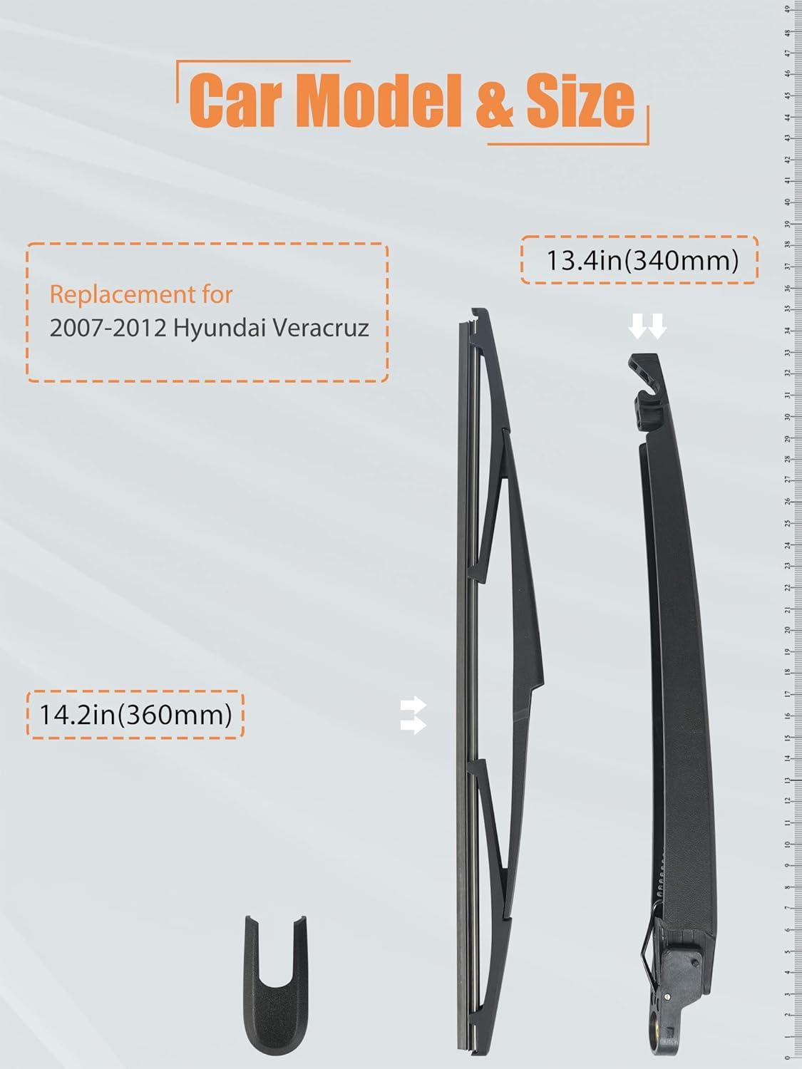 Rear Wiper Arm Blade, Replacement for 2000-2012 Toyota RAV4 – MIKKUPPA Back Windshield Wiper Assembly Replacement – All Season Natural Rubber Cleaning Window(Replacement for Hyundai Veracruz 2007-2012)