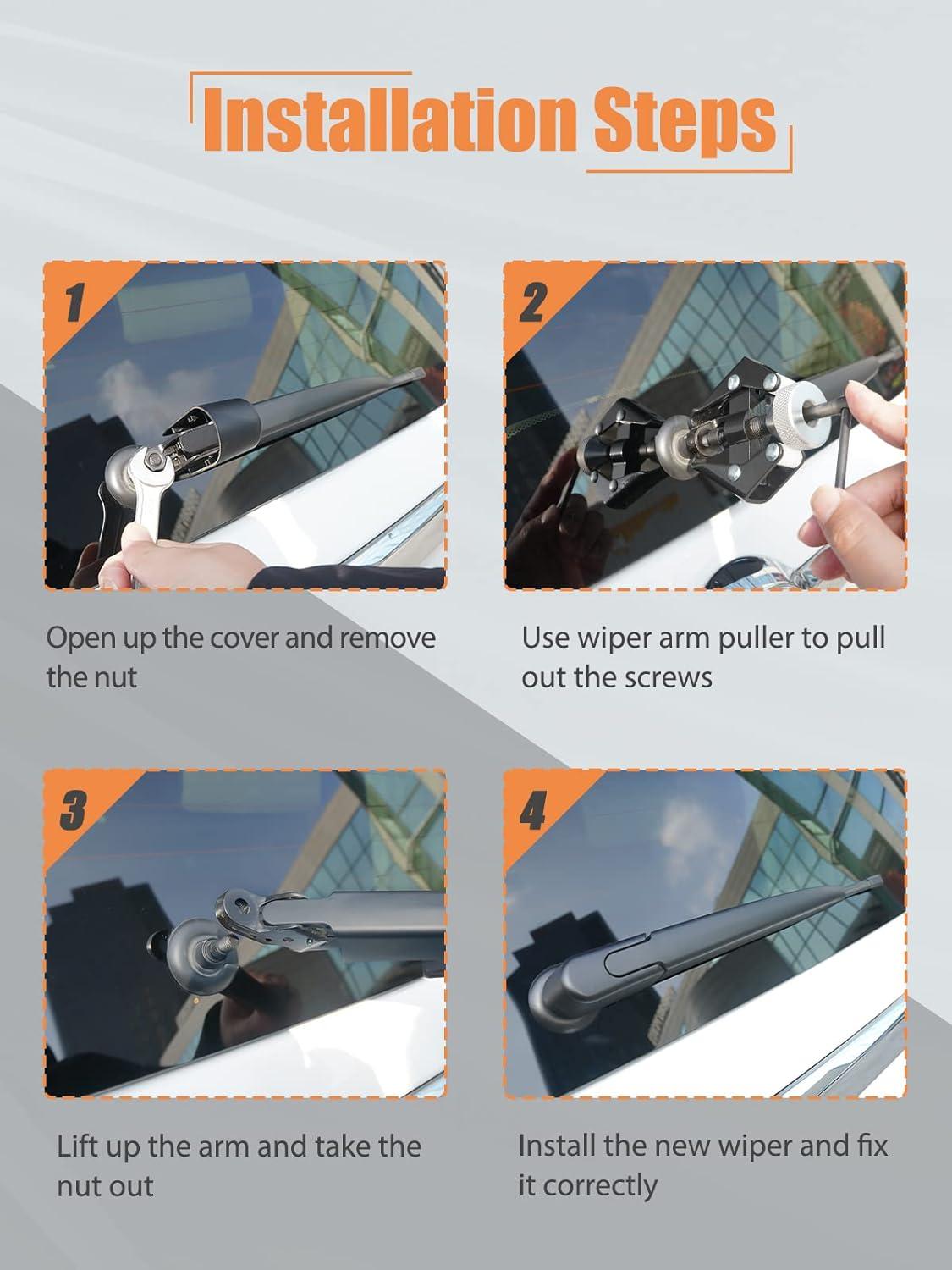 Package Included – 1 X rear windshield wiper arm, 1 X wiper cover, 1 X rear windshield wiper blade, 1X instruction manual and 12-months warranty